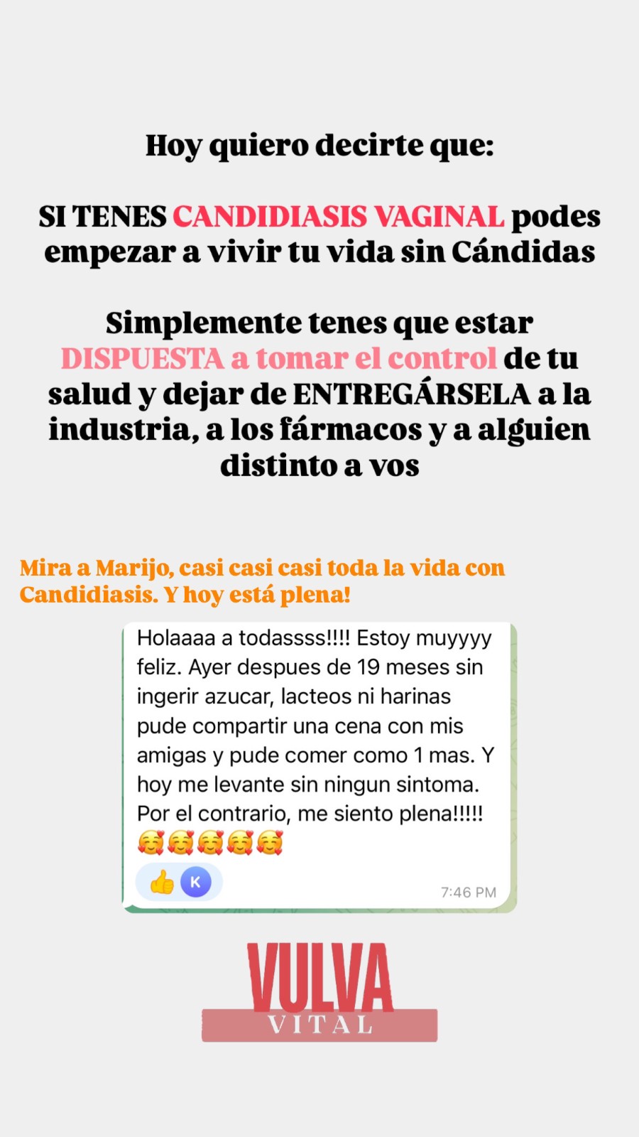 En VULVA VITAL ordenamos los 4 pilares para que puedas controlar tu Candidiasis, asi lo haremos...